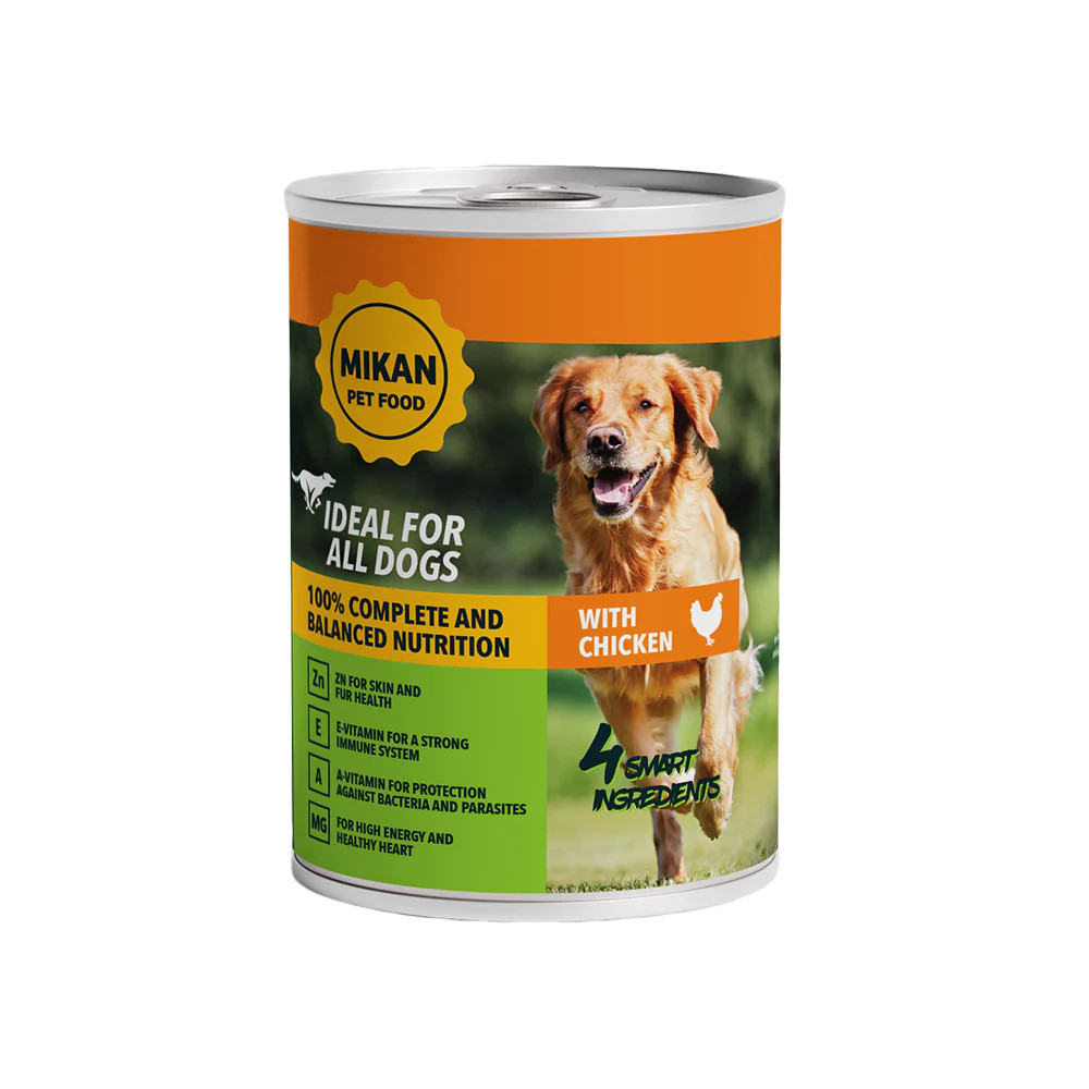 A Mikan Can Poultry ideális minden kutya számára. A nedves eledel a kutyának naponta adott száraztáp kiegészítésére ajánlott.