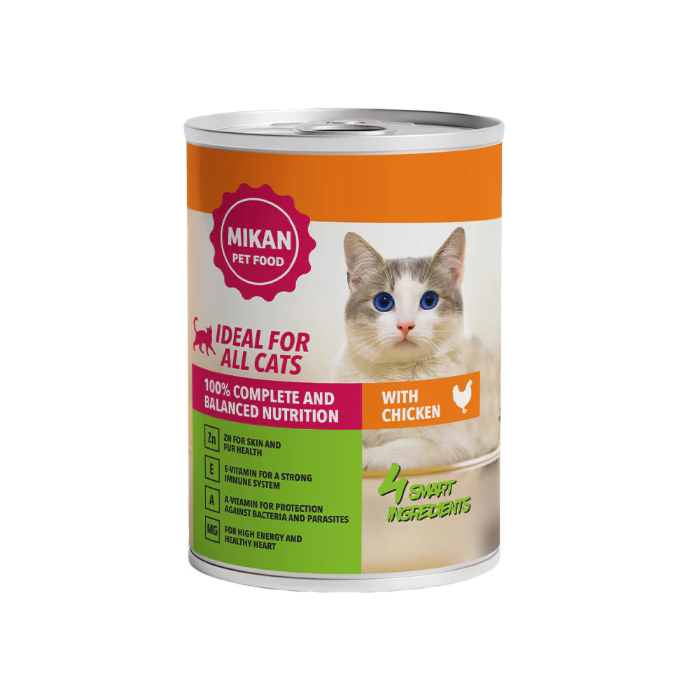 A Mikan Cat Can Poultry ideális minden macska számára. 100 %-ban teljes értékű és kiegyensúlyozott táplálék.